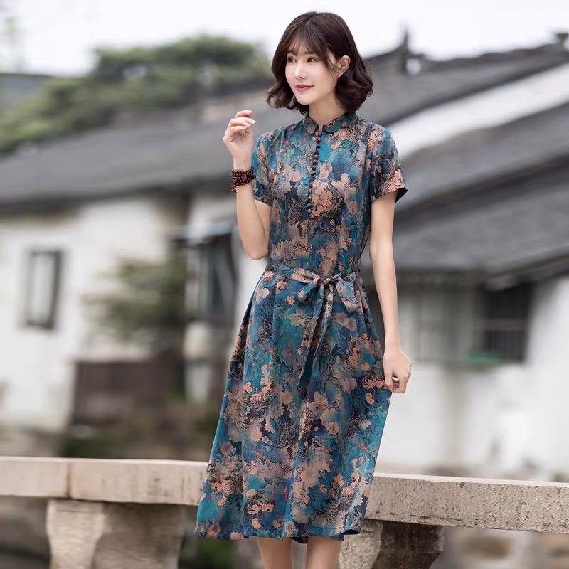 添潭盛泰真絲連衣裙以蠶絲為原料,特點(diǎn)是吸濕率高(5%~10%)、透氣性好、質(zhì)地光滑柔軟、富有彈性、具有蠶絲天然光澤、明亮柔和。點(diǎn)燃纖維,燃速慢,有燒毛發(fā)氣味。抽出絲條解捻,長(zhǎng)絲連綿不斷。真絲面料制衣穿著舒適、涼爽。