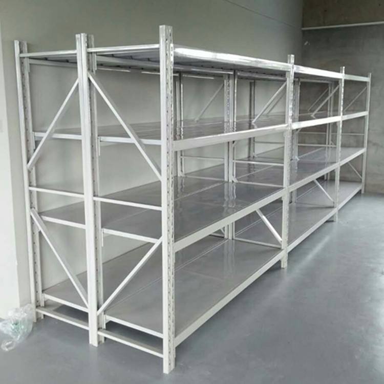中型貨架是由立柱,橫梁,層板組裝而成的,獨立的一組有兩片立柱,這樣的貨架叫做主架。如果把幾組組裝成為一列,那么除了需要兩片立柱外,其他的可以和它前面的一組共用一片立柱,這樣的貨架叫做副架。