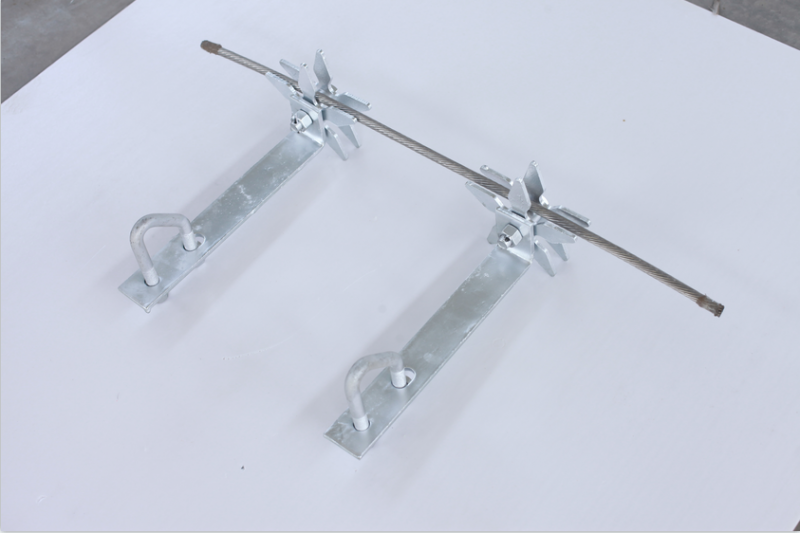 配有防墜器、導向件、上下固定鋼索的裝置。