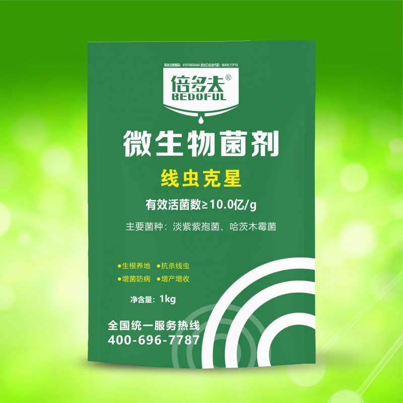 本品是以淡紫紫孢菌和哈茨木霉菌為主針對滅線蟲卵蟲和雌蟲;預防作物霜霉病、灰霉病、葉霉病、葉斑病等葉部真菌性病害具有較好的抑制作用,是目前理想的改良土壤、綜合預防作物根結線蟲和根部病害的生物制劑,廣譜、無污染、無殘留,可改善作物根部環境生長。