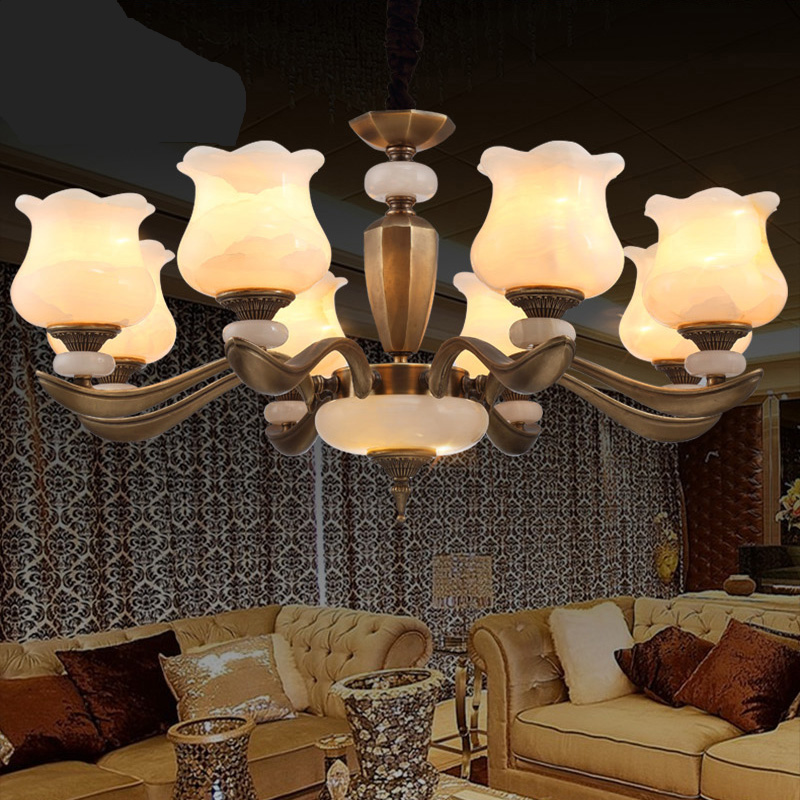 玉石銅燈 全銅玉石燈 白玉燈具 歐式天然玉石吊燈: