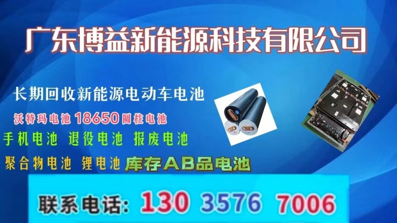 廣東博益新能源科技有限公司長期面向全國上門回收鋰電池,廢電池回收,新能源汽車電池,動力電池,聚合物電池,18650電池,沃特瑪電池,32650電池,三元鋰電池,磷酸鐵鋰電池,寧德時代電池,國軒電池,力神LISHEN電池,光宇電池,億維電池,比亞迪電池,贛鋒鋰電池,比克BAK鋰電池,汽車底盤模組,測試機構實驗電池組、電池包,電動汽車電池模組,鋰電池組測試樣品,主機廠售后電池組,新能源試驗車、事故車報廢電池組,各單位退役電池.各類公交車巴士貨車,面包車轎車鋰電池模組,工廠庫存BC品電池,鋁殼電池,正負*片,各類電池組合積極發掘動力電池梯次利用,杜絕污染,廢物循環再利用,安全環保利國利民。中介重酬!歡迎咨詢!