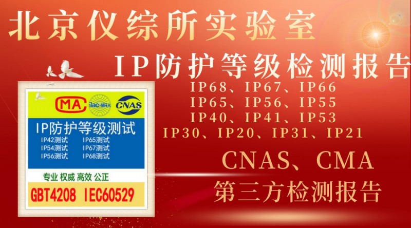 北京儀綜所檢測中心提供IP68水等級認證,IP65防護等級測試服務,提供國家認可的第三方檢測報告,CNAS和CMA檢測報告。