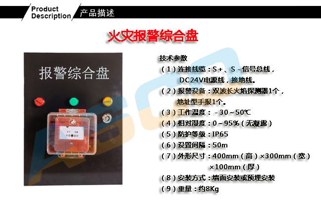 隧道報警綜合盤內含雙波長火焰探測器、手動報警按鈕、中繼模塊及信號和電源避雷器等其他器件若干。