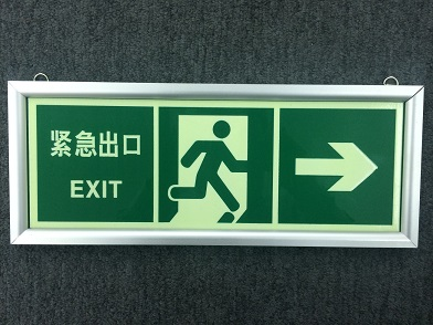 產品描述:1:通常采用0.41mm厚度蓄光型阻燃耐磨PVC或鋁合金板材作為基材,再表面印刷國標綠色圖案,常用產品背部帶有自粘膠,方便直接黏貼于光滑干凈的墻面。