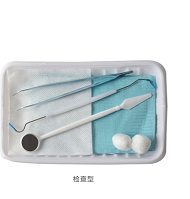 檢查型: 由基本組件一次性使用口腔鏡、鑷子、牙探針,可選組件醫用棉球、一次性使用治療巾、醫用脫脂紗布塊、一次性使用吸唾管、一次性使用填充器、一次性使用醫用橡膠檢查手套、一次性使用聚乙烯檢查手套、包布、物品盒組成。
