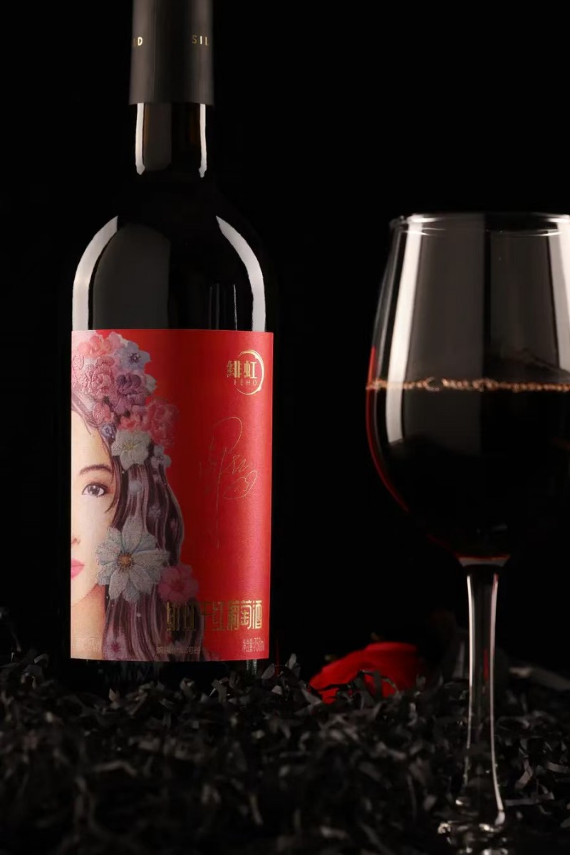 香港知名演員、歌手翁虹自創紅酒品牌緋虹絲路酒莊干紅葡萄酒。