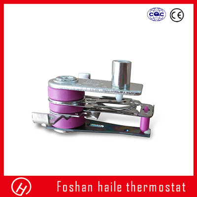 溫控器開關ksd101的結構組成:S型支架與雙金屬片、 定位彈片 、陶瓷配件、 調節絲套、 觸點。