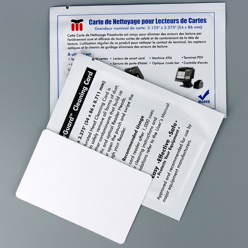 CR80通用清潔卡用于Zebra、Datacard、Evolis、Magicard、Fargo等多種證卡打印機及ATM機、POS終端、讀卡器、自動取票機、門鎖、IC卡加油機、刷卡器等磁卡讀卡設(shè)備的清潔維護,減少設(shè)備出現(xiàn)故障的頻率,延長設(shè)備的使用壽命。