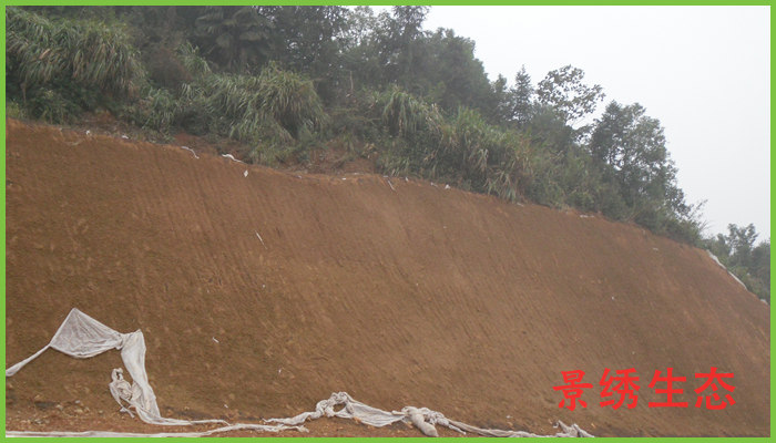 此項目多批次施工隊進行過試點施工,結果都因坡面陡峭降雨集中導致試點失敗,客土邀請我司采用高分子材料客土噴播。