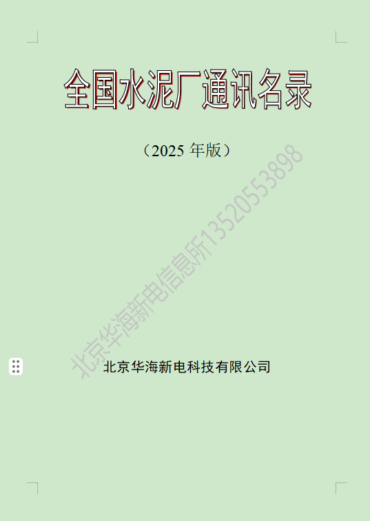 全國水泥廠通訊名錄》由北京華海新電信息咨詢有限公司在2002年 開始發行,到今年已經走過了21個年頭,期間得到廣大新老客戶的支持幫助,在此一并致謝!《全國水泥廠通訊名錄》一直在更新,每年都會編輯進去新投產的水泥廠,停產的機組,產能出讓的廠家也會標注出來。水泥廠屬于產能過剩的行業,這幾年一直在兼并重組,產能轉讓,關停并轉,企業名稱一直在變,本資料只提供企業現在的名稱。本書內容包括:全國31個省市地區的水泥企業3800多家。大、中、小型水泥生產企業(水泥廠、熟料廠、粉磨站)的地址、郵編、投產時間,產品,主機設備,重要科室負責人的姓名、聯系電話及部分。是企業聯系客戶的重要資料。