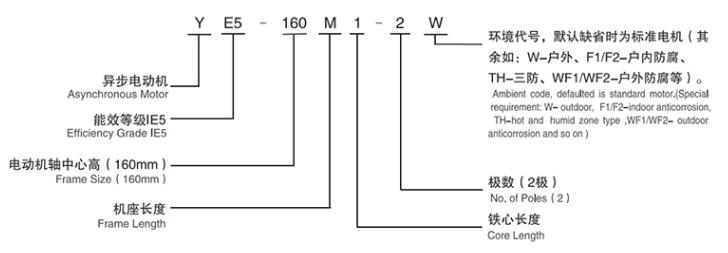 YE5系列超高效三相異步電動機型號說明