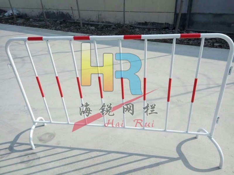 鐵馬護欄又稱為施工鐵馬、施工鐵護欄、施工護欄、市政鐵馬等,高度基本都為1.3米。主要用于對道路及建筑施工時起到與人群隔離的作用。鐵馬護欄外管采用32mm鐵管,內管采用22mm鐵管焊接加工制作成形后進行靜電噴涂后高溫烘干工藝,最后表面加貼反光膜成品;擺設方便,耐沖擊,不易老化生銹、使用壽命長等特點。