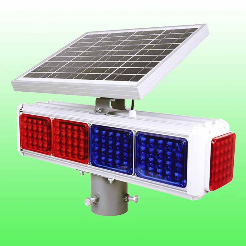 太陽能四燈爆閃燈特點:外殼由經氧化處理的鋁材材組合,表面塑料噴漆,外觀精美,長時間使用并不會出現銹跡斑斑,閃燈采用密封結構組合式燈組,每組20個超亮LED,真空鍍膜反光板,亮度高,警示效果好,聚碳酸酯燈罩,抗沖擊,耐老化,整燈的密封密封效果好,有很好的防水性,并配有過充電過放電保護功能。