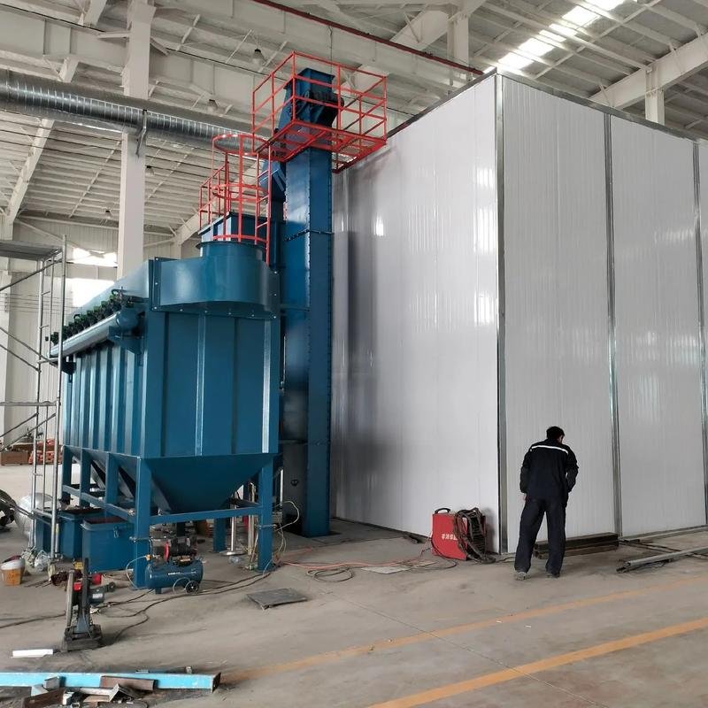 全自動(dòng)打砂房刮板回砂除塵凈化設(shè)備是一種用于噴砂作業(yè)中砂料回收和粉塵凈化的設(shè)備,以下是其相關(guān)介紹: