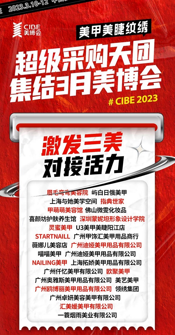 展商陣容**,專業(yè)買家組團(tuán)勢(shì)不可擋,來(lái)自全國(guó)20多個(gè)省市地區(qū)的代理商、經(jīng)銷商、美業(yè)連鎖機(jī)構(gòu)、美甲美睫門店、醫(yī)美機(jī)構(gòu)、美業(yè)培訓(xùn)學(xué)校、MCN機(jī)構(gòu)、社交電商、社群團(tuán)購(gòu)等萬(wàn)名買家已火熱集結(jié)。