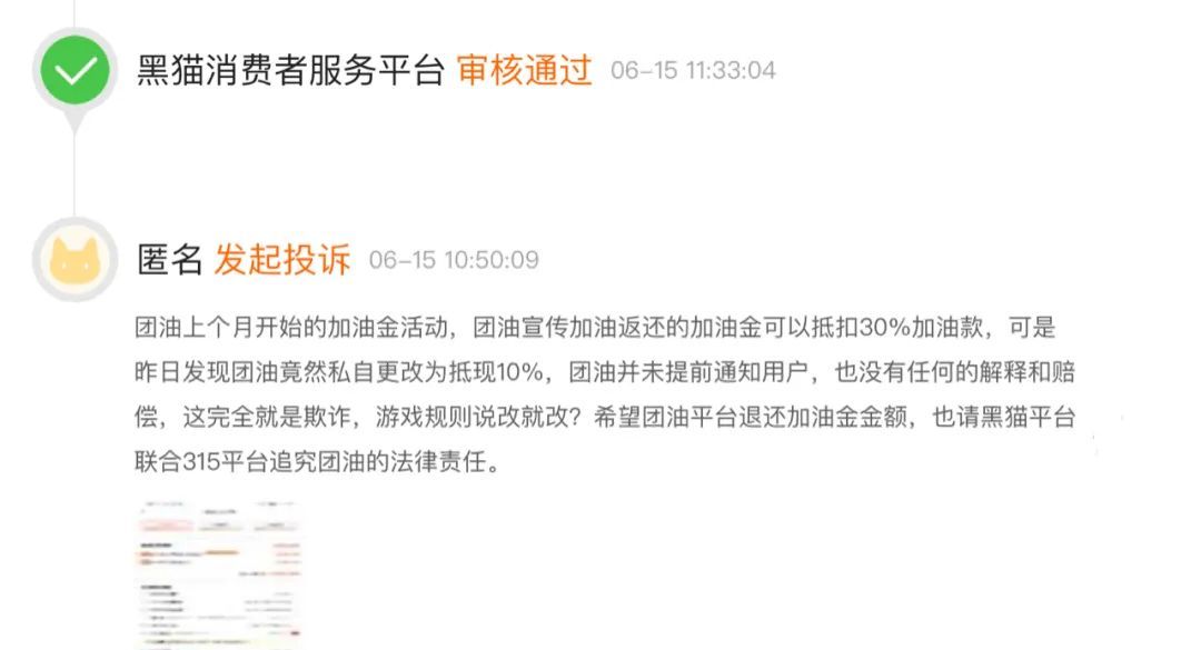 在最開始團油的宣傳中,明明加油金可以抵扣加油金額的30%,可是現在團油悄悄修改了規則。