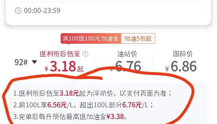 大概每升便宜0.5元左右,加上加油金和優惠券每單也最多只能優惠10-20元左右。