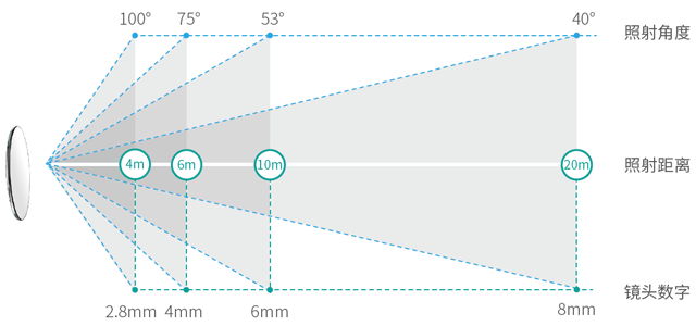 一般來說,IPC的鏡頭焦距越大,視場角越小,而監控距離越遠。