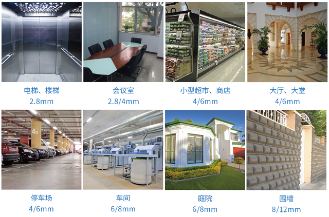 在實際監控場景中,2.8mm焦距適用于電梯、樓梯等較為狹小的環境,4mm適用于會議室、商店稍大一些的場景等,而停車場、工廠車間、庭院等更開闊的地方則可以選用6mm以上的鏡頭;具體選擇可以根據需要而定。