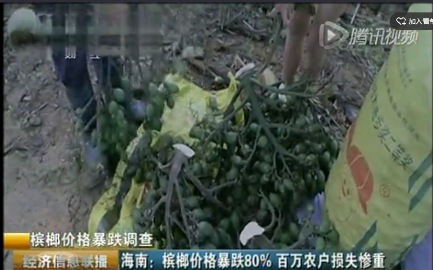 2013年7月14日央視的《新聞30分》中,報道了檳榔致癌,對該行業產生重大打擊,檳榔價格暴跌。兩個月后,央視財經頻道再次報道“檳榔價格暴跌,海南百萬農戶損失慘重”。