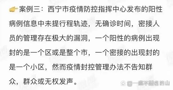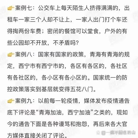通告發(fā)出的瞬間,沒有人解釋一下,這一遍遍的XX之下,究竟是哪里出現(xiàn)了問題?是出現(xiàn)在這一系列的案例上嗎?一個(gè)陽性病例的出現(xiàn),封的就是一個(gè)區(qū)或是整個(gè)市,一個(gè)密接的出現(xiàn)封的是一個(gè)小區(qū)?這符合國家九不準(zhǔn)的政C嗎?