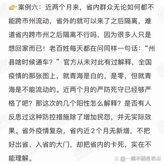 在當(dāng)事人的帖子上,千言萬語,感到心痛難過的,也只有遙遠(yuǎn)的陌生人與一樣遭遇的同類人!面對(duì)這一系列出現(xiàn)的衍生問題,民眾又該找誰訴說,這是一個(gè)必須要提上臺(tái)階的硬性考量。西寧的民眾不愿意看到,類似上面音頻中,女士打了幾乎所有的ZF民生電話,要么打不通的現(xiàn)象;更無法接受,打通了,問詢一下廁所沒有水,吃不上飯的情況等等,得到的是模棱兩可的,推諉扯皮的答復(fù)。沒有人再愿意聽,向領(lǐng)導(dǎo)反映了,向領(lǐng)導(dǎo)反映了......信譽(yù)本不該如此!