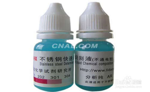 八、現在市場上有一種不銹鋼檢測藥水,只要滴上幾滴就能在幾秒鐘內區分是什么不銹鋼,這種藥水特別方便,原理是使材料內的所含元素與鑒別藥水里的物質發生化學反應生成有色物質,本方法非常方便,而且準確可行,目前這種鑒別藥水在網上能買到,市場上很難買到。
