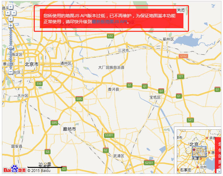 你網站中插入的百度地圖是不是變成下面的這種了?