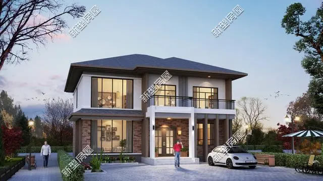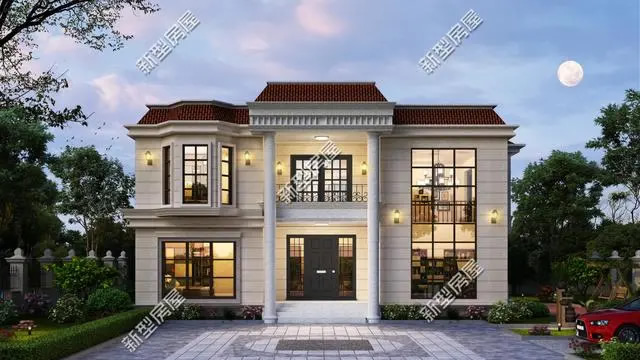 第1套:舒適陽臺+通透落地窗+大客廳,12×14米簡歐二層小宅,主體預算40萬