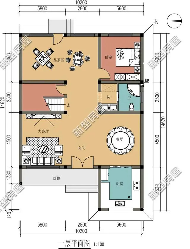 推開入戶門,引入眼簾的便是這寬敞的大客廳,跟餐廳貫通相連,招待客人更為方便。北側設立一個品茶區和棋牌室,休閑娛樂更為方便。二層設立四個臥室,足以滿足家人居住需求。再設立一個休閑涼亭和舒適陽臺,方便乘涼觀景。
