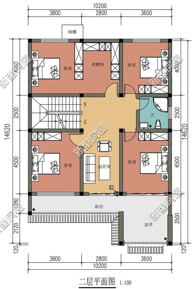 第2套:雙入戶門+休閑涼亭+多臥室,10×14米中式二層雅宅,主體預算35萬