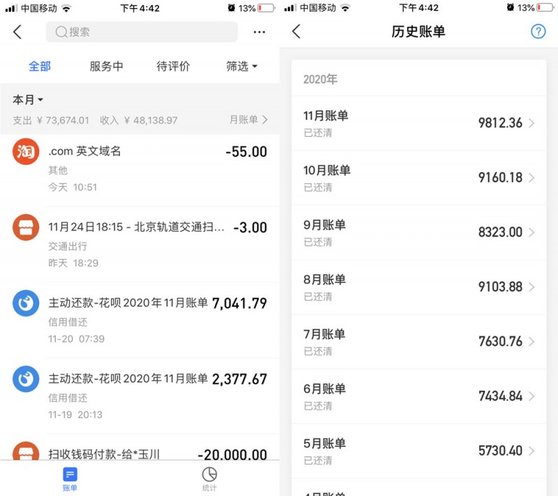 ▲ 觸目驚心的花唄賬單