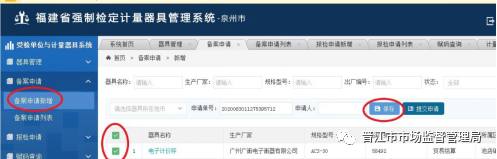 第二步,登錄“福建省強制檢定計量器具管理系統”網上報檢
