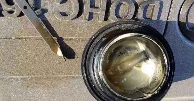 第三種是防凍液進(jìn)入汽缸內(nèi)參與燃燒,比如缸體裂縫,缸墊燒蝕或腐蝕變形等,這時(shí)拔出油尺看機(jī)油是否出現(xiàn)乳化現(xiàn)象(機(jī)油乳化就是機(jī)油變成了乳狀液體,呈現(xiàn)乳白色或乳黃色,看起來像是用水?dāng)嚢璧拿婧?,且有泡泡),因?yàn)楦左w上有油道和水道,一旦缸墊損壞,水道便無法密封,就流到了油道里。
