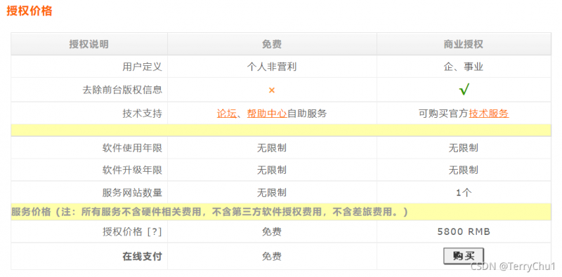 織夢(mèng)在其官網(wǎng)上公布了收費(fèi)明細(xì),商業(yè)授權(quán)5800元,織夢(mèng)強(qiáng)調(diào),除『個(gè)人非營(yíng)利網(wǎng)站』外,其他網(wǎng)站需購買 DedeCMS 使用授權(quán),例如:政府單位、教育機(jī)構(gòu)、協(xié)會(huì)團(tuán)體、企業(yè)、以營(yíng)利為目的的站點(diǎn),并且僅能使用一個(gè)網(wǎng)站。獲得授權(quán)的站點(diǎn),在同一大版本范圍內(nèi)享受免費(fèi)升級(jí)。如需升級(jí)到同一大版本范圍內(nèi)的不同級(jí)別授權(quán),按最新官方授權(quán)報(bào)價(jià)補(bǔ)足差價(jià)即可。