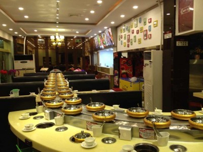 客人只需要坐在自己的位子上,一鍋湯底,菜品自動(dòng)傳到我們的身邊,只需動(dòng)動(dòng)手,就可以拿到自己想要的菜品,來回傳送的精美菜品,更是讓人目不暇接,擁有傳送帶的火鍋店面,更加美觀。