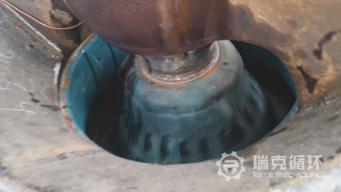 該臺GP100液壓圓錐破碎機投入生產到我公司回收使用的時間并不長,設備是山東某砂石生產企業購買的,用于制砂生產線中,該砂石生產企業在生產了一段時間以后由于當地環境保護的力度不斷增大,將該企業關停,隨后被閑置堆放。該臺設備被我公司回收以后,外觀有明顯的銹跡但內部結構保存的還比較良好,公司技術人員對該臺設備進行的拆機檢查維護,發現頂部軸承,動錐部位,主軸這些關鍵部位都完好無損,公司對其它有磨損的部位進行了修復重新更換了易損件,并且進行了系統的維護保養。