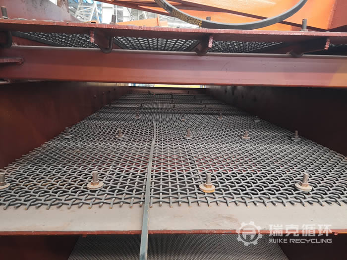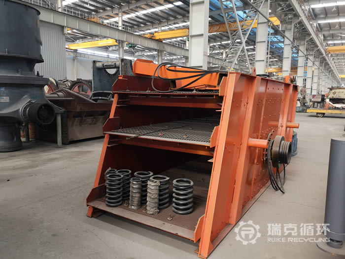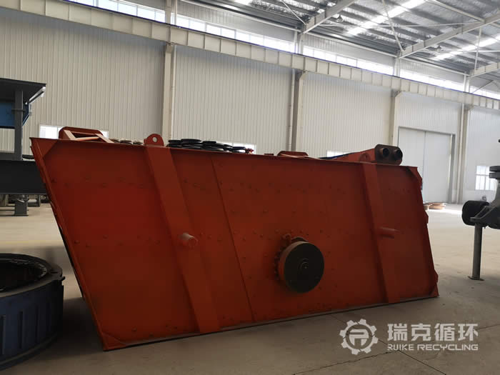 該臺3YK1545振動篩是我公司在山東回收的,由于生產規模的擴大,該臺設備篩分能力不能滿足生產的需要,將設備拆除轉讓給我公司。設備在篩分工作中性能十分的穩定,除了更換過篩網和易損件以外,沒有進行過其它的維修,設備運回公司以后,技術人員對該設備進行了拆機檢查,發現激振器主軸、撓性片等零部件保存都比較完好,只是篩網損壞和機身上有銹跡,隨后我公司更新更換了篩網、油脂等,并且進行了小時的試機,性能非常的穩定,各項數據也符合標準,然后給設備重新噴漆并做防銹處理。