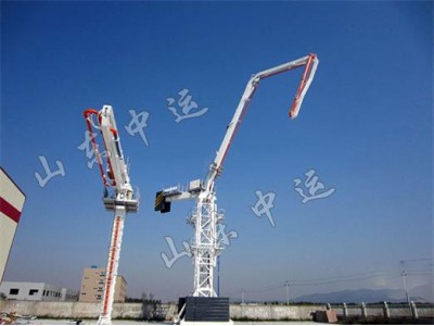 “Z”形三節折疊臂, 360°回轉,能俯仰和展折變幅,在臂架長度范圍內實現三維立體空間的全方位澆注,無澆注死角,能方便地實現墻體、管、柱、樁等各種施工作業的混凝土澆注。