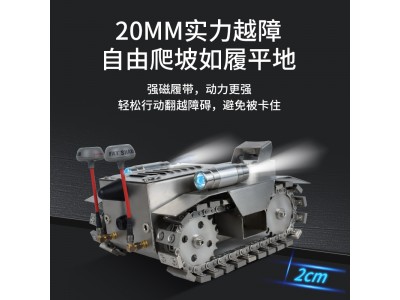 如中央空調(diào)清洗機(jī)器人K6用于風(fēng)系統(tǒng)主風(fēng)管道清洗,刷頭可以進(jìn)行360度旋轉(zhuǎn),可以全方面清洗管道內(nèi)部,并附帶自主吸塵功能,一遍清洗塵埃一遍吸塵,方便快捷、前后LED燈,前后攝像頭,可在操作臺實時看到管道內(nèi)部進(jìn)行操作,操作臺有錄像功能,可記錄清洗后的效果,和操作過程。