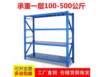 ,高度一般在3m以內(nèi)。如果單元貨架跨度在2m以內(nèi),層載在500kg以內(nèi),通常選無(wú)梁式中型擱板式貨架較為適宜;如果單元貨架跨度在2m以上