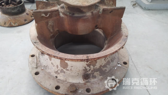 該臺GP100圓錐破碎機在鵝卵石破碎中出現(xiàn)了飛車現(xiàn)象,破碎能力下降了很多,客戶將設(shè)備拆除送到我公司維修。