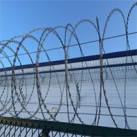 監獄鋼網墻蛇腹型刀刺網:BTO-22,70-A,抗拉強度大于1450N/mm,刀型整齊,刀片鋒利,排列均勻、致密,連接牢固,防腐能力強、可達到防翻躍、防拆卸最高安全防護等級。