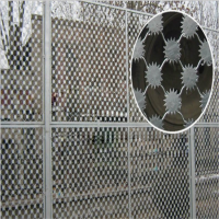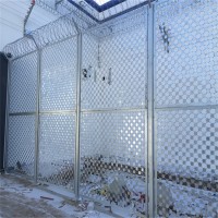 監獄防護網又稱監獄護欄網或監獄隔離柵,主要是采用高強度的刀片刺網與普通防護網的結合,由V型支架立拄,加強型焊接片網,安全防盜連接件和刀片刺網組成.刀片刺網是一種新型防護網,由銳利尖角鍍鋅鋼板或不銹鋼薄板做刀片,鋼絲做芯線組合而成的防護器材.