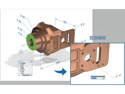零件設計功能可處理零件的各個方面,既有基于歷史特征關系的參數化順序建模,又有對模型結構直接編輯修改的快速建模,融合兩種建模方式,按需自由切換,從而將創意和概念轉變為3D數據模型。
