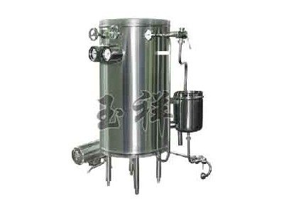 ,在主機內裝著壓力容器-高溫桶,用作充盛壓力蒸汽。桶外的主要設置是螺旋形雙套管,用作對進、出物料的冷熱交換;桶內的主要設置時螺旋形單管,用作間接受熱。 物料的滅菌過程。物料通過供料泵進入雙套盤管的外層流道、由內層流出的熱料間接加熱而得到預熱,當物料進入設置在高溫桶內的高溫盤管時,由于桶內的蒸汽間接加熱而被加熱到需要的滅菌溫度,然后在桶外單旋管內保溫而使物料細菌被殺滅,當回到雙套盤管時,物料便進入內層流道,被外層冷料所冷卻,從而使出料溫度顯著下降(一般低于65℃)。如工藝上需要提高或降低出料溫度時,可啟用角式截止閥,讓它接通熱源(蒸汽)或冷源(水或冰水等)讓它們進入雙套管下端的外層流道。 節流閥是可以調節的,一方面讓物料維持在一定的壓力之下, 使其沸點溫度提高,以防止汽化:另一方面,也作調節流量用。物料最后經三通旋塞除料。該旋塞下端接著旋管,其出口將著貯槽,當需要時,可旋動旋管對準溢流管。進料三通旋塞的上端與貯槽接通,下端則與料源管道相連接。