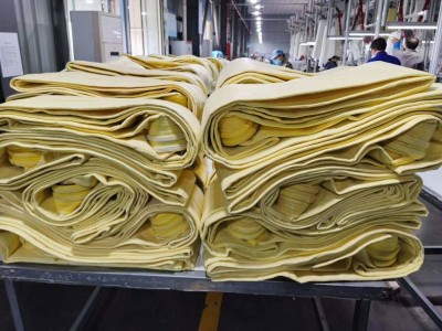 生產除塵濾袋除了具有生產普通針刺氈的工藝外,還要求在生產針刺氈的基布的經紗中并入導電纖維紗或在化學纖維中混入導電纖維或導電材料,實現導電功能。