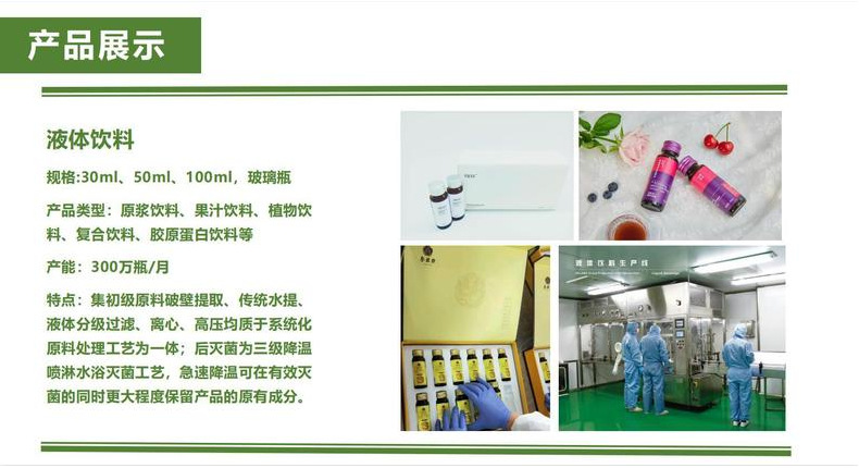 1.液體飲料-口服飲液-飲品:規(guī)格30ml/50ml/100ml/瓶,玻璃瓶。