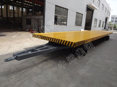 平板拖車又稱平板車、全掛平板車、全掛車、平板掛車等,是現代物流運輸重要的工具。使用平板拖車是提高經濟效益最有效而簡單的重要手段。具有承重能力強效率高等優勢。 可由一輛牽引車牽引一輛或一輛以上的全掛車組合而成的平板拖車列車。
